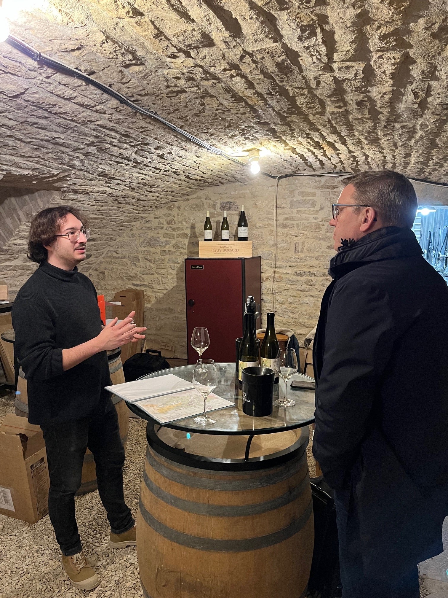 "Domainet omfatter i dag 5,8 hektar vinmarker i de bedste terroirs i hovedsageligt Meursault, men også en smule i Auxey-Duresses. Familien Bocard har fremstillet vin i mange generationer på deres vingård i hjertet af Meursault, men i efteråret 2018 valgte Guy Bocard at sælge sin vingård til familien Derichebourg. Derichebourg familien har sat gang i en større renovering af vingården samt en opdatering af produktionslinien, og der bliver ikke sparret på noget, kun det bedste er godt nok. Siden 2019 er produktionen omlagt og dyrkes nu efter økologiske principper. Vinene produceres altid med respekt for naturen og for udtrykket i hvert enkelt terroir. Druerne høstes, når de er perfekt modne for at opnå størst mulig koncentration og kompleksitet. I kældrene vinificeres efter traditionelle metoder, og vinene lagres på franske egetræsfade fra 12 måneder og op til 24 måneder for premiers crus vinene. René ankom fra Sydfrankrig til Bourgogne i 1989 og startede som drueplukker hos Guy Bocard. Her forsatte han igennem 13 årog til sidst gik René side om side med Guy og lærte markerne og vinmarkerne at kende. I 2001 søgte René nye udfordringer og arbejdede frem til 2020 hos nogle af de mest anerkendte vinhuse i Bourgogne. Her blev han kontaktet af Domaine Guy Bocard og spurgt om det ikke var tid til at han vendte "hjem" og sluttede cirklen. René er meget lidenskabelig omkring vinproduktionen og det med stor vægt på økologi. Han lægger hele sit hjerte i hver enkelt vinstok, så du kan være sikker på, at hver vin er lavet med ægte passion og kærlighed." Wine.dk